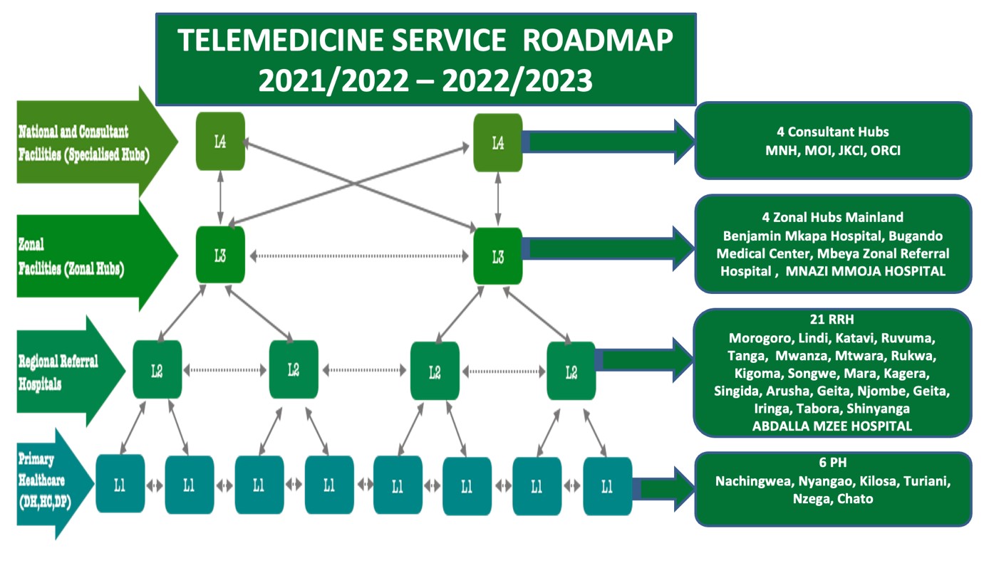 Dar es Salaam Institute of Technology is developing National Telemedicine Platform which will support the delivery of telemedicine service in store and forward mode, in line with designing the network infrastructure to facilitate the service delivery across all health facilities.